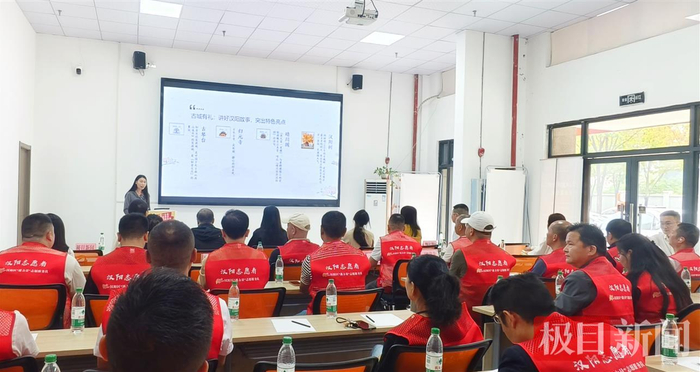 。武汉市北极光汽车科技服务有限公司党支部书记吴苗苗现场为大家鼓劲:“咱们的乘客车厢,就是听拿伴汉阳的‘流动博物馆’。大家每递出一份折页